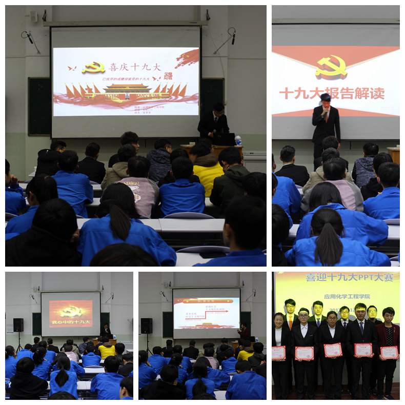 为深入学习贯彻党的十九大精神,2017年11月19日晚上在西阶二举办“喜庆十九大”主题PPT大赛,院领导、辅导员、学院团总支员工会干部和部分16级、17级员工参加了此次大赛。