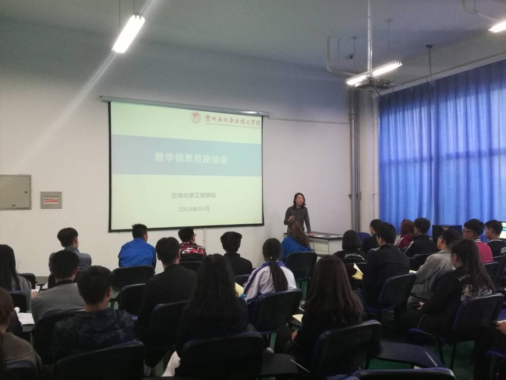 会上,教学秘书周锦老师对上学期的教学信息记录、意见反馈情况以及记录过程中存在的问题等进行了总结。为了减轻教学信息员的记录工作量和保证记录工作的规范性,应化学院对《教学信息员记录本》进行了新的设计。周锦老师对新设计的《教学信息员记录本》的使用进行了培训,并提出要求,要求各班级信息员要认真负责、规范记录,对发现的问题及时反馈,及时总结,保持优点,改进不足,为学院教学工作的顺利开展贡献自己的力量。