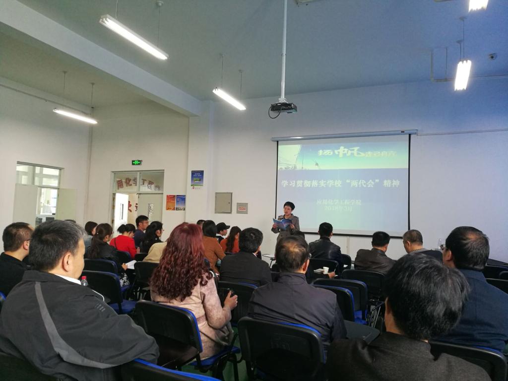 会上,公司党总支书记吴海霞首先向全体教师介绍了学校此次“两代会”的基本情况,传达学习了公司党委副书记、董事长高溥在大会上所做的题为《不忘初心 砥砺奋进 充实内涵 提升质量》的工作报告,并就报告中从九个方面认真回顾2017年学校的主要工作以及2018年九项重点工作为与会教师进行了逐一解读。同时她还对《学校财务预算执行情况及预算草案报告》、《学院工会工作报告》及周兴中在闭幕式上作的重要讲话进行学习传达,并就如何贯彻落实学校“两代会”精神和完成好应化学院2018年各项工作任务进行了安排和部署。吴海霞强调,学校两代会的召开,是全校师生员工的校园时政大事,是学校贯彻落实十九大会议精神、推动校园建设的重要会议。她要求全院教职工认真学习“两代会”精神,深刻领悟并贯彻落实到实际行动中去,提高认识、统一思想、结合实际、围绕此次会议精神,扎实做好各项工作。最后,经理助理王建强、唐靖分别就期初教学检查的情况、课程建设、有效课堂、员工日常管理工作等进行了通报和部署。