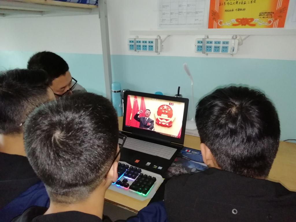 此次学习宣传“两会”精神进公寓活动,借助多种学习平台,组织广老员工、员工党员、入党积极分子及时学习“两会”内容,谈体会、话感受,掀起了公寓“两会”精神学习热潮。一是在公寓内制作“两会”宣传板报专栏,向同学们宣传 “两会”的焦点、热点话题;二是倡导广老员工、入党积极分子利用课余时间,主动从智能手机、电脑上观看“两会”有关视频,积极交流,热切讨论,分享心得,在总结和反思中提升作为一名员工党员的光荣感和使命感;三是组织员工党小组、宿舍舍长就大家关心的热点问题进行讨论、交流,并写出自己的学习心得,培养同学们关心国家时事热点的意识,努力锻造合格老员工。精细161班韩靖是一名新发展的党员,她在网上详细阅读了全会精神。她说:学习和关注“两会”,对今后自己的学习工作都有很大的指导作用,同时希望自己的思想政治觉悟得到进一步提高,为将来报效祖国做好准备。