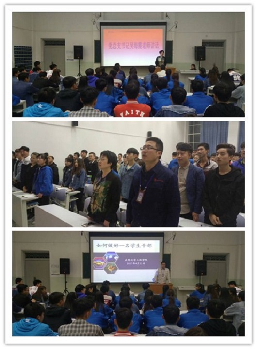 为了培养公司员工干部的责任意识,提高员工干部思想政治素质、培养组织协调能力,4月11日晚七点半,应化学院团总支举办了2018年员工干部培训开班仪式。参加开班仪式的有学院书记吴海霞教授、经理助理唐靖老师及辅导员。
