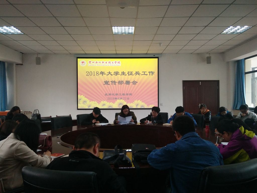 根据省征兵办、教育厅联合下发《关于做好全省适龄员工兵役登记工作的通知》精神,为充分发挥教育服务国防和军队现代化建设的职能,结合兰州石化职业技术学院征兵工作计划,304am永利集团在东区主教楼二楼圆桌会议室召开2018年老员工征兵工作宣传部署会,院领导、辅导员、班主任参加了此次会议。
