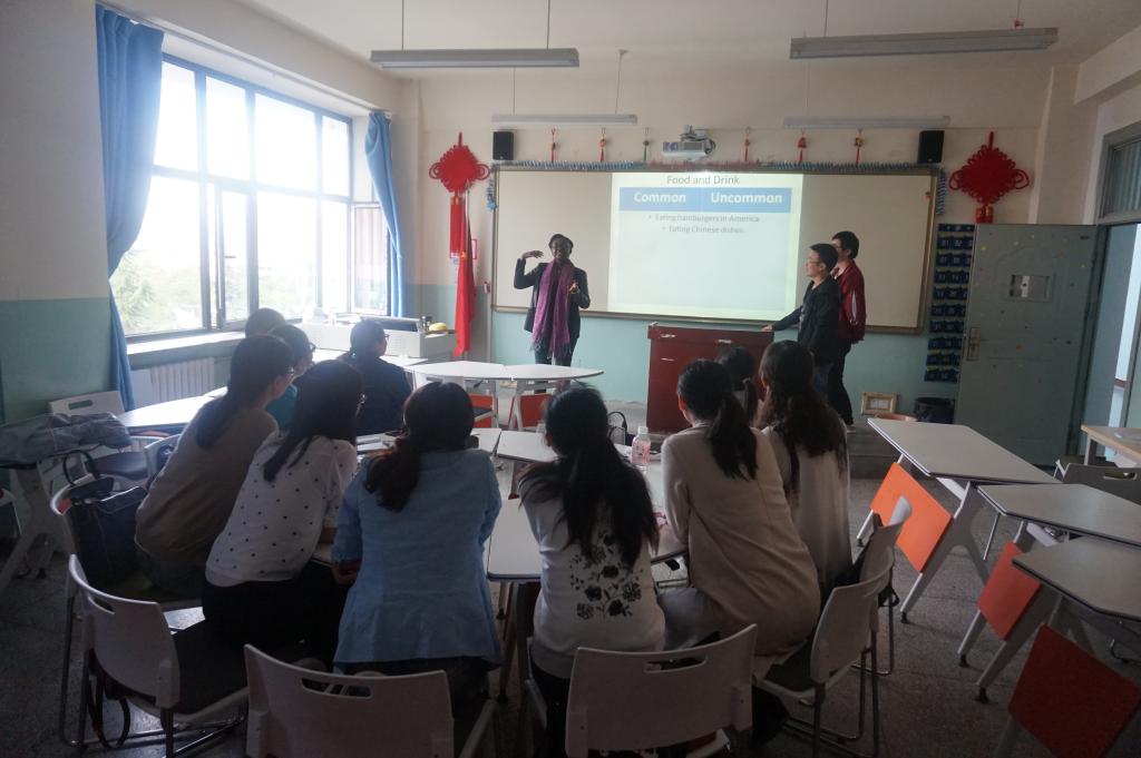 5月8日下午,英语口语培训在东主教学楼正式开课。在课前的开课仪式上,应化学院经理侯侠对国际教育学院提供的帮助表示了感谢,并对教师提出了学习纪律要求,希望各位老师抓住机会,认真学习。国际教育学院经理王鹏对培训内容和培训教师进行了介绍。课中,外教Akos(王可)老师采用丰富的教学手段,对中国和美国的文化差异进行了介绍,为各位老师上了生动的一课。