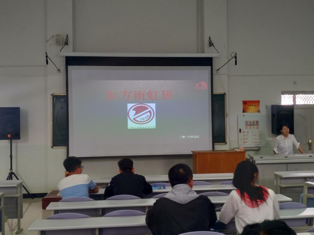 5月23日,东方雨虹咸阳生产基地人力资源部主任王青女士一行二人前来304am永利集团遴选2019届毕业生,应化学院领导、老师及应化学院、石化学院、机械学院、电子学院相关专业的员工在西区西阶三教室参加了企业宣讲会。