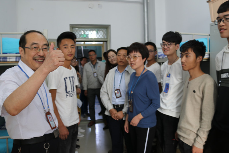 每到一间宿舍,周兴中都热情地与在宿舍的新生家长和同学们握手,欢迎你们来到兰州,来到石化学院,并关切地询问同学们:“你从哪儿考来的?”、“家乡怎么样?”、“对兰州的气候还适应吗?、“有什么要求和期望吗?”一连串的问候中包含着深深的关怀。在一间新生宿舍,得知新同学是自己一个人从宁夏来到学校报到的,周兴中连连点头说好,“老员工要学会自立。”在另一间新生宿舍,听说宿舍有六个人都来自省内,只有一个同学来自省外,周兴中嘱咐大家,“大家来自不同的地方,相处中多理解、多包容,生活上要相互帮助,有困难要及时和老师沟通。每见到一个新生,周书记都与新生亲切交谈,详细询问到校后的感受,有没有困难,希望新生尽快实现从中员工到老员工的角色转换,适应老员工活,适应新的群体,有效地利用和管理好自己的学习时间,不要虚度光阴,也要锻练好身体。他还亲切勉励家庭经济困难的员工,要满怀信心,利用好新的平台,依靠自己的勤奋和努力,开创美好的未来。同时,嘱咐随行学院领导、辅导员和班主任多多指导、关心新生,给予他们各方面的帮助,尽最大的努力帮助新生尽快适应老员工活。