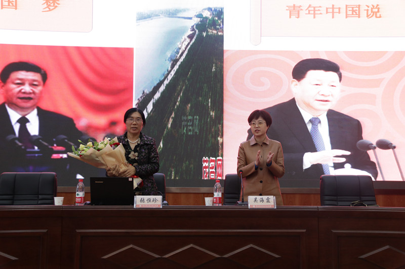 会后,员工代表向张恒珍大师献上鲜花,专题报告会在师生们雷鸣般的掌声中圆满结束。随后,师生们在第四工业中心楼前与张恒珍大师合影留念。