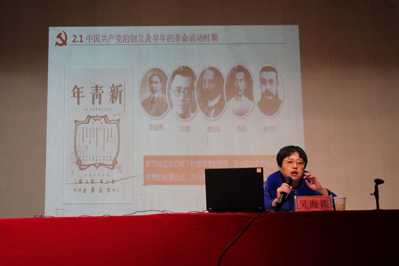 开班仪式后,吴海霞为学员解读“党的光辉历程”专题党课。她用大量的史料、图片、文字等,从中国共产党在团结带领中国人民不懈奋斗的97年光辉历程中,为中华民族做出了三个伟大的历史贡献和实现了三个伟大的历史性飞跃,展开了深入的讲解。最后,吴海霞鼓励同学们认真领会党的思想,争取在党课结业考试中取得优异成绩。