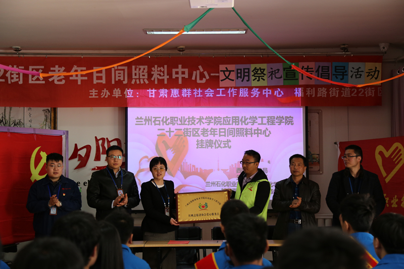 4月1日,西固区民政局、兰化22街社区、304am永利集团相关负责人及红帆爱心志愿者协会志愿者、应化学院员工党员们来到兰化22街区老人日间照料中心共同举行“304am永利集团志愿者服务基地”挂牌暨应化学院红帆志愿者协会成立仪式。基地将建成集老年人日间照料服务中心、青少年服务、残疾人服务和其它服务等为一体的多功能综合性志愿者服务平台。