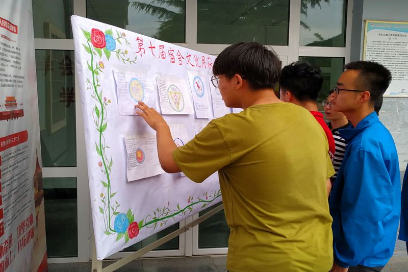 本次比赛采取命题设计方式进行,围绕“舍”计精彩,任我发“徽”的主题即兴发挥。各参赛宿舍发挥了天马行空的想象,发挥自身创意设计能力,设计各类“创意新颖”的丰富多彩的作品。参赛舍徽风格多种多样,有青春热血的,文艺清新的,优雅别致的,抽象脱俗的。在本次作品设计的视觉效果方面,有的同学用简单的线条勾勒,紧密的布局结构和线条分配,表达了自己宿舍团结友爱的和谐主题;有的同学则通过丰富的图形搭配表达了同学们对宿舍和学院的热爱,透露了他们心中的梦想和对未来的憧憬;还有的同学则通过精美赏心的图案设计和颜色搭配,展现了独属于他们宿舍的青春时尚和个性风采,以此,成为了本次比赛作品中的一大亮点。最后,评委通过他们的舍徽的设计感以及解说词两个方面,评选出一等奖1个,二等奖2个,三等奖3个、优秀奖4个。获奖作品制作成展板,摆放在明德公寓楼前进行展示,吸引众多同学驻足欣赏。