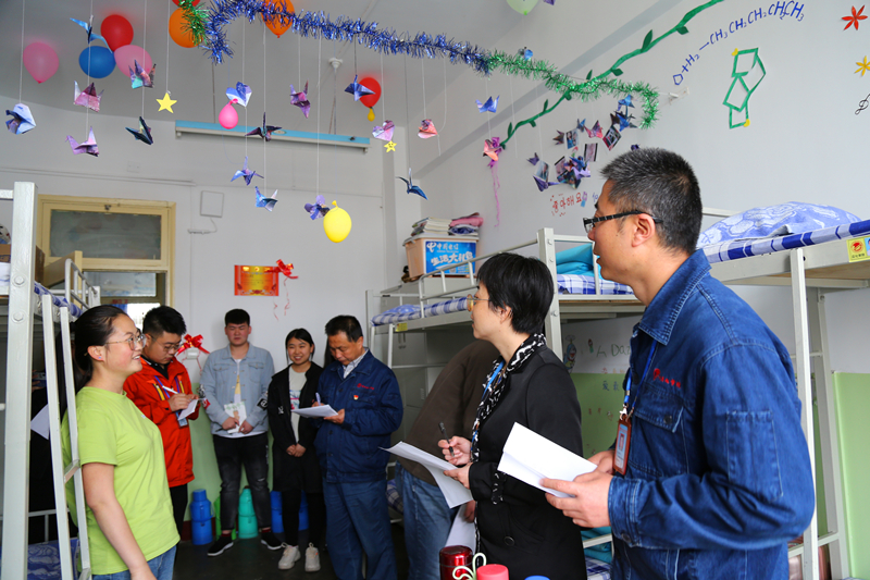 在本次宿舍美化大赛中,同学们积极参与,表现出浓厚的兴趣以及较强的动手能力,将各个宿舍装饰得是别样清新别致、缤纷绚丽,青春活力充满着整个宿舍。一幅幅色彩斑斓的化工绘图,一只只自制的小纸鹤,一张张学习生活的照片,不仅从独特的视觉给人以一种美的享受,而且都凝聚了同学们对生活的热爱,对老员工活的希冀;展示了同学们对打造宿舍文化、美化宿舍环境、凝聚宿舍力量的新体现、新要求。5月15日上午,学院领导、辅导员、员工会干部一起对宿舍进行检查评定。经过精心筛选,最终评定为:“一等奖”好源公寓907;“二等奖”好源公寓912、914;“三等奖”好源公寓1003、913、911;“最佳创意奖”好源公寓906。