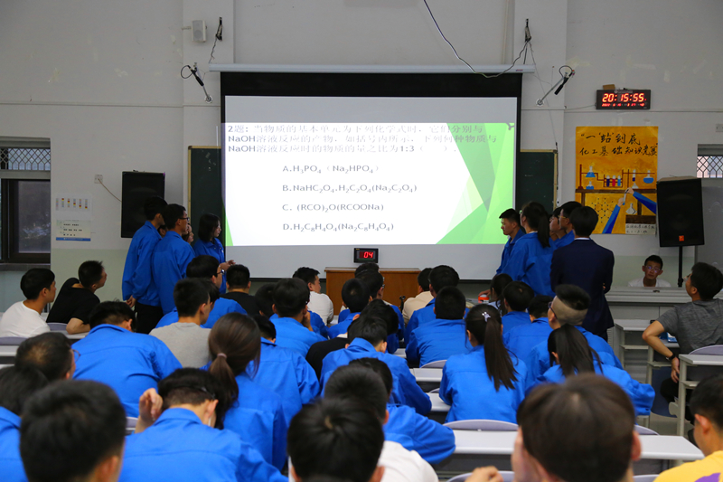 6月18日,304am永利集团在学校西区西阶二教室举办“‘一战到底'化工知识竞赛”决赛,本次活动为更好的激发公司员工学习专业知识的兴趣,以及增强公司学风建设,使员工进一步巩固化学知识,学以致用。经理助理唐靖,辅导员王靖基、朱杭静出席此次活动并担任评委。