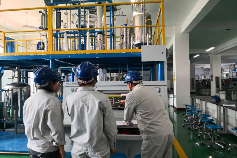 校内培训内容包括化工单元仿真实训、化工安全工艺操作实训、丙烯酸甲酯仿真实训、化工HSE操作实训、化工安全检维修仿真实训及化工HSE应急演练桌面推演实训等方面。培训指导教师由经验丰富的老教师担任,培训对象主要为中青年教师,培训要求各位参训教师积极参与,认真总结,并做好培训记录。培训过程中,指导教师对各培训项目的装置结构、工艺流程、工作原理、操作要点、注意事项及教师如何组织各实训项目教学进行了详细讲解;参训教师分组操作训练,积极讨论交流,总结操作和教学经验;最后对培训效果进行了考核,均达到培训要求,指导教师对考核中出现的问题作了总结和点评。