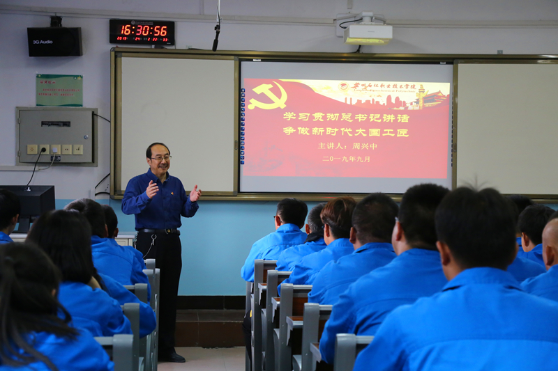 周兴中首先详细讲解了党的十八大以来,习近平总书记发表的重要讲话,围绕习近平总书记提出的许多新思想新观点新论断新要求,解读了新形势下党和国家发展的一系列重大理论和现实问题。随后,周兴中从五四运动讲到中国特色社会主义进入新时代,中华民族迎来了从站起来、富起来到强起来的伟大飞跃。五四运动至今已近百年,这期间社会的进步,民族的富强,人民的幸福,离不开当时抛头颅洒热血的志士,离不开党的英明领导,同时也离不开青年人对核心价值观的践行与传播。每一代青年都有自己的际遇,生逢其时的我们应铭记责任,扬起风帆,以奋斗浇筑青春,为民族复兴铺路架桥,为祖国建设添砖加瓦。周兴中教导同学们作为当代老员工,我们必须严格按照习近平总书记的要求,努力全面提高自身素质,要忠于祖国人民,勤奋踏实、刻苦钻研,立鸿鹄志,做奋斗者,求真求实,知行合一,力争成为一名“有理想信念、有道德情操、有扎实学识、有仁爱之心”的合格员工。作为技术技能型人才,就必须做到“求真学问、练真本领”,把自己的发展和国家的发展联系起来,为争做新时代大国工匠而努力奋斗。