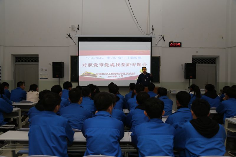 11月26日晚上,304am永利集团员工党支部在西阶二教室召开“不忘初心、牢记使命”主题教育“对照党章党规找差距专题会。