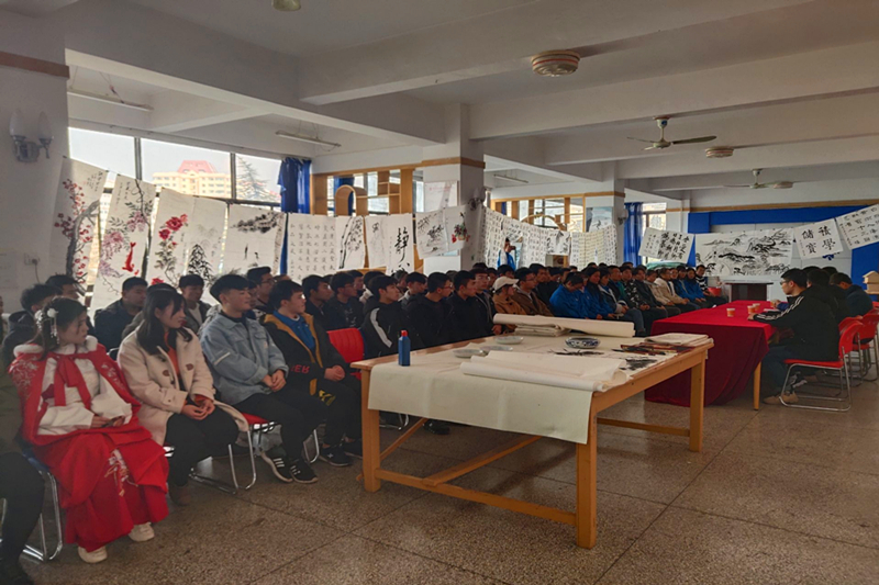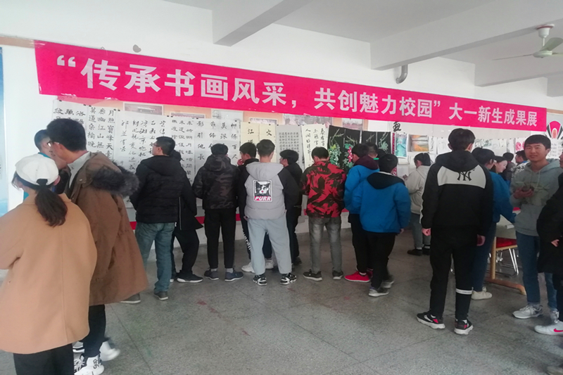 此次书画作品展览的作品有大约60副,包括剪纸、软笔书法、硬笔书法、素描、国画等,其中剪纸、部分软笔和部分国画在众多作品中脱颖而出,整齐美观,构思独特,这是同学们汗水和智慧的结晶,也是对传统文化的传承精神,还有其他初学者的作品,虽然相比之下并不美观,但也能看出他们平时刻苦训练的结果。展览会现场各种书画作品一一陈列,一系列展品吸引了许多同学的驻足,都饶有兴致的研究着,现场还有工作人员讲解,让同学们有了更深的了解。更精彩的是指导老师和同学们现场挥墨,他们奋笔疾书,挥毫泼墨。书画爱好者们相互交流着,引起了众多爱好者的围观和赞叹,活动井然有序。