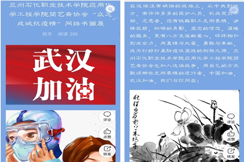 本次活动为同学们提供了一个品味传统文化、展现个人风采的平台,展现了本院师生的艺术风采。同时以抗击疫情为主题的作品也表达了大家对一线抗疫英雄们崇高的敬意。