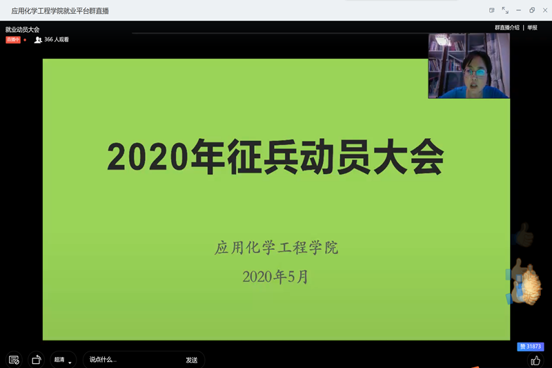为深入贯彻落实学校关于《开展2020年下半年老员工应征入伍报名工作的通知》要求,确保高标准、高质量完成今年学校下达的征兵任务,5月25日晚上,公司召开“莘莘学子携笔从戎参军报国建功立业”线上征兵宣传动员大会,院领导、辅导员、班主任及全体在校生参加了此次征兵会议。