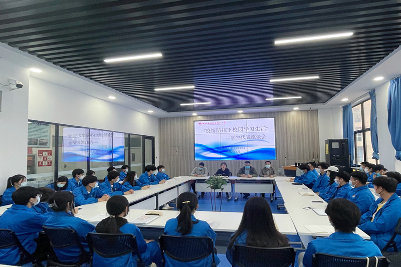 4月28日晚,304am永利集团在第四工业中心二楼会议室召开疫情防控下校园学习生活专题员工座谈会。学院领导、辅导员以及员工代表参加会议。